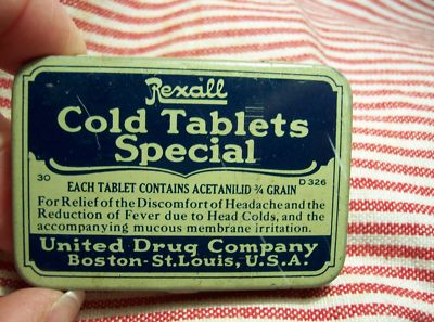Title (ebay affiliate link): Tin-Medical-Rexall Cold Tablets Special-United Drug-Older 1940's- TINDECO-NR