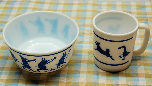 Vintage 2 Pcs Childs Milk Glass Blue Farm Animal Dishes