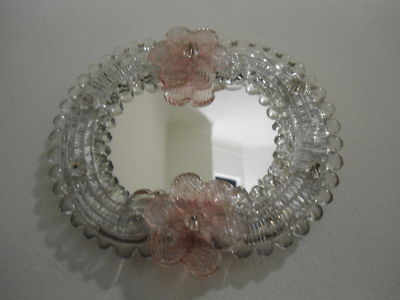 LOVELY BEAUTIFUL VINTAGE MURANO ITALY ART GLASS WALL MIRROR