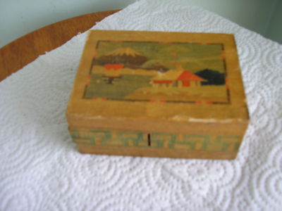 Title (ebay affiliate link): Vintage Japanese Wooden Puzzle Box With Drawer Inlaid Mt.Fuji Scene On Lid -NR