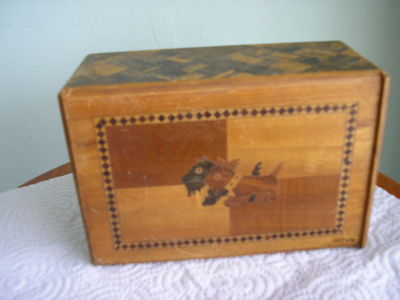 Title (ebay affiliate link): Vintage Japanese Lg.Wooden Puzzle Box Scotty Dogs/Mt.Fuji Scenes Inlaid Wood