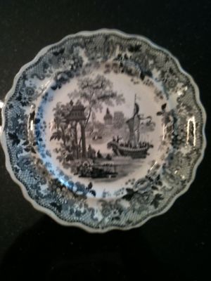 Title (ebay affiliate link): Vintage Transferware Plate Black/White T. Mayer Stoke Oriental Scenery Pretty!