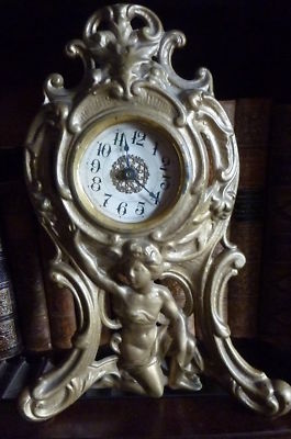 Cast Iron Gold VICTORIAN Type NUDE MANTEL CLOCK 1906 RARE