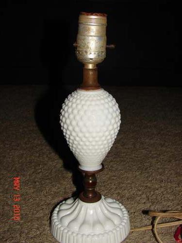 Antique Vintage Hobnail White Milk Glass Electric Lamp