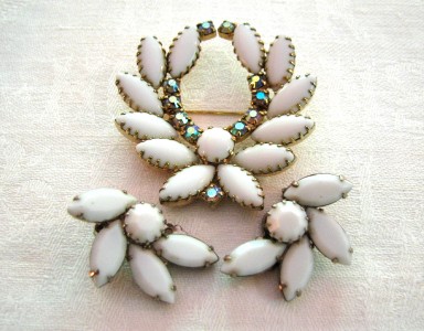 VINTAGE MILK GLASS AURORA BOREALIS PIN & EARRINGS