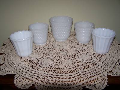 Lot of 5 Vintage Milk Glass Planters Hobnail