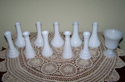 Lot of 11 Vintage 6 inch Milk Glass Vases Brody Hoosier