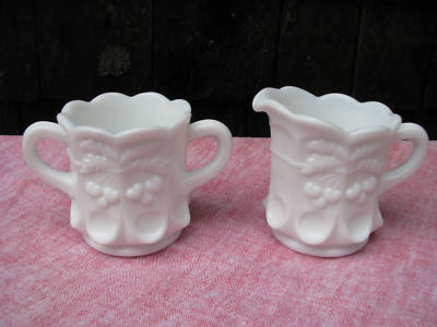 Westmoreland Milk Glass Cherry & Cable Sugar & Creamer