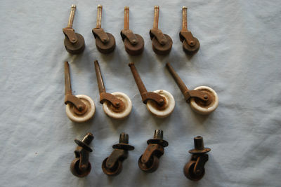 Title (ebay affiliate link): 3 sets of 4 old casters: wood, steel, milkglass/porcelain ?