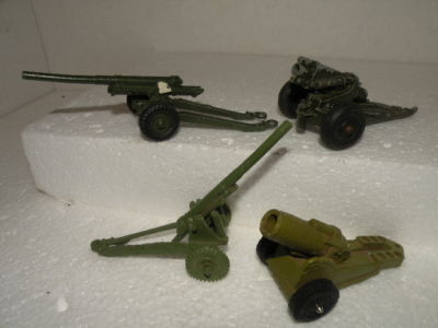 4 Howitzers 1 sft pl rubber Ideal metal Tootsie & Dinky