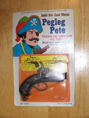 Title (ebay affiliate link): VINTAGE MINI PEG LEG PETE FLINTLOCK CAP PISTOL WITH KEYCHAIN MOC