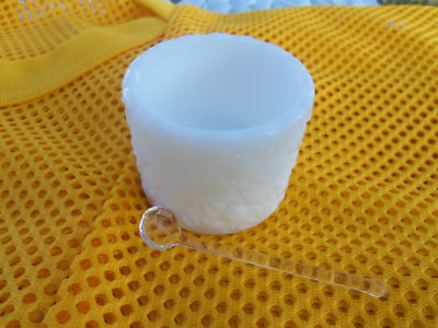 Button and daisy, buttons and daisys white milk glass salt cellar & glass spoon
