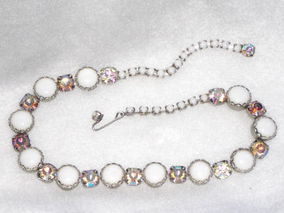Title (ebay affiliate link): *** A BEAUTIFUL FAUX MILK GLASS & RHINESTONE NECKLACE - ANTIQUE****