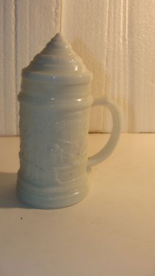 GREENTOWN MILK GLASS BEER MUG WITH LID