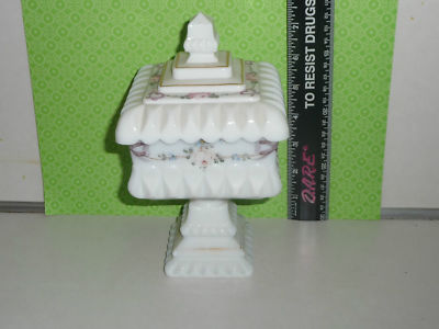 Title (ebay affiliate link): Vintage WESTMORELAND MILK GLASS WEDDING BOWL COVERED COMPOTE CANDY DISH PAINTED