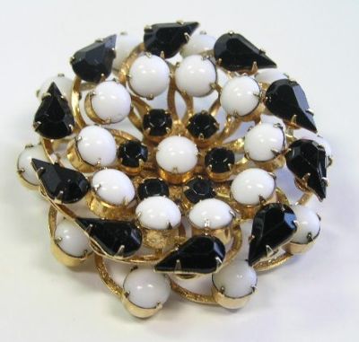 Title (ebay affiliate link): Vintage TWO TIER Black & White Milk Glass CLUSTER RHINESTONE Brooch Pin