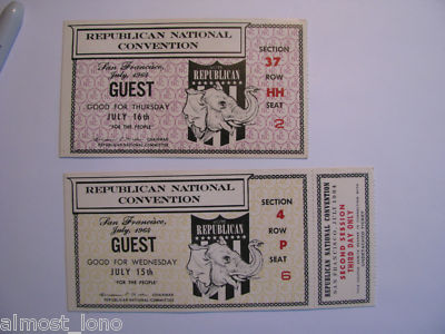Title (ebay affiliate link): Lot 2 tickets 1964 Republican National Convention GOLDWATER Cow Palace Political