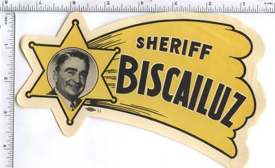 Title (ebay affiliate link): California Politics - SHERIFF BISCAILUZ Die Cut Decal Label Window Sticker