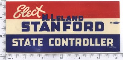 Title (ebay affiliate link): California Politics - Elect M. LELAND STANFORD State Controller Label Sticker
