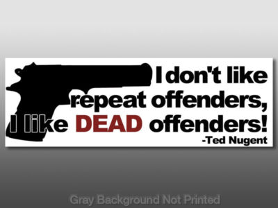 Title (ebay affiliate link): Ted Nugent I like DEAD Offenders Sticker -gun nra gop repeat anti crime 2nd cop