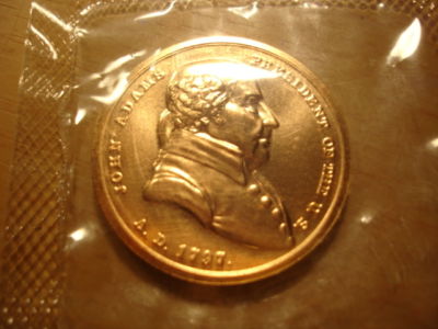 Title (ebay affiliate link): Peace and Friendship Medal John Adams Gold Plate Coin-President John Admas