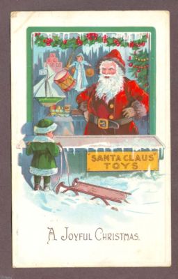 Title (ebay affiliate link): F634.Old Postcard joyous Christmas Red Santa Claus toys