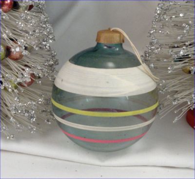 Title (ebay affiliate link): Vintage JUMBO Blue W Stripes Unsilvered War Era Paper Cap Christmas Ornament