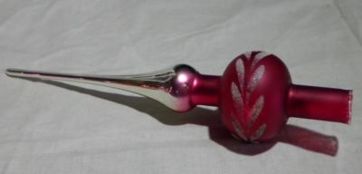 Title (ebay affiliate link): Glitter Frosted Italian SPIRE TREE TOPPER Glass RED & SILVER Mercury Glass 10"