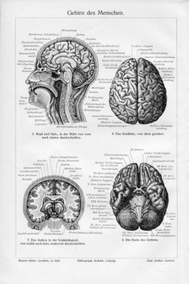 1894 HUMAN BRAIN ANATOMY Antique Engraving Print