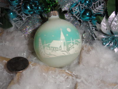 Title (ebay affiliate link): Vintage Glass ornament 1940's Fluorescent Church scene Shiny Brite Christmas