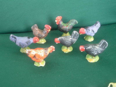 Title (ebay affiliate link): 7 VINTAGE 1930's HANDPAINTED CHRISTMAS PUTZ BARNYARD CHICKEN & ROOSTER FIGURES