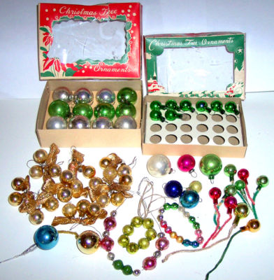 Title (ebay affiliate link): Vtg Antique Christmas Feather Tree Mercury Glass Beads Ornaments Picks Misc. Lot