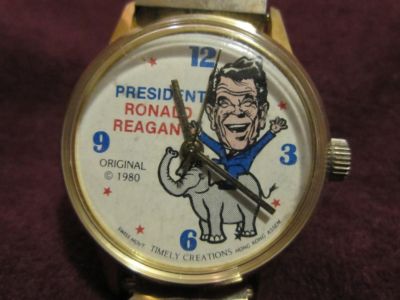 Title (ebay affiliate link): Vintage Ronald Reagan Political Cartoon Wristwatch - Works!