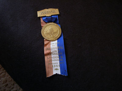 Title (ebay affiliate link): JOHN F KENNEDY AND LYNDON B JOHNSON INAUGURAL PIN AND RIBBON