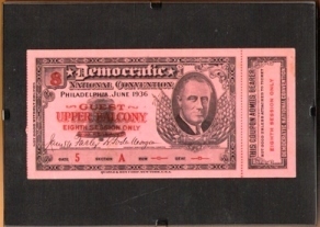 1936 Democratic Convention Pass-Ticket-Franklin D. Roosevelt=Stub Attached