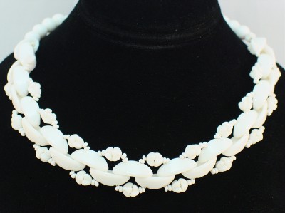 Stunning Deco Woven Milk Glass Necklace West Germany