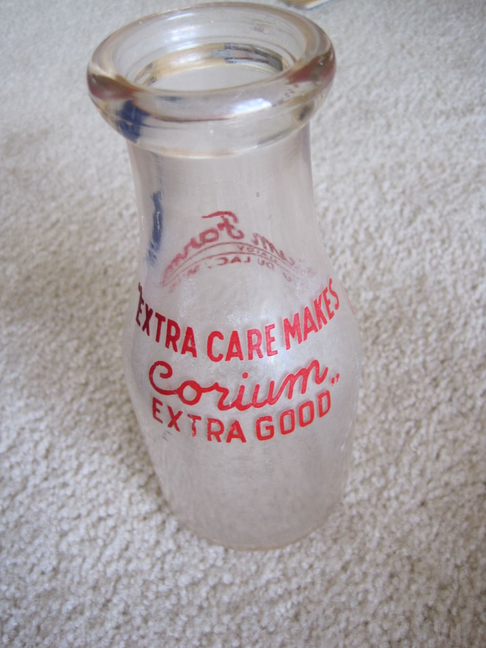 Antique Red Painted Glass Milk Bottle CORIUM DAIRY Wi
