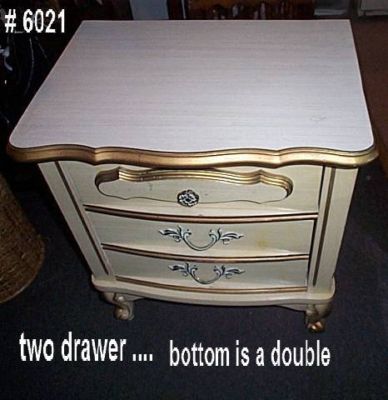 Title (ebay affiliate link): VINTAGE FRENCH STYLE WHITE /GOLD NIGHSTAND/ OCCASIONAL CHEST /LAMP TABLE