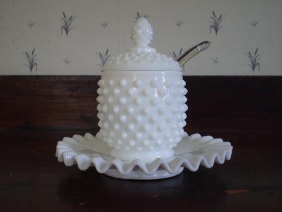 Fenton Milk Glass Hobnail Complete 4 Piece Jam Set