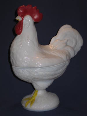 Vintage Westmoreland Milk Glass Rooster Nest Dish