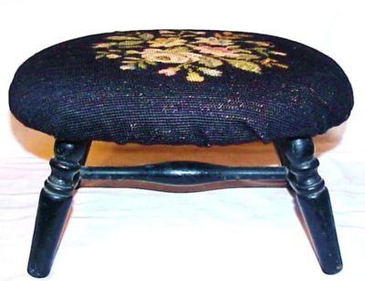 Title (ebay affiliate link): QUAINT AND PRETTY HAND DONE VINTAGE NEEDLEPOINT ROSES FOOT STOOL