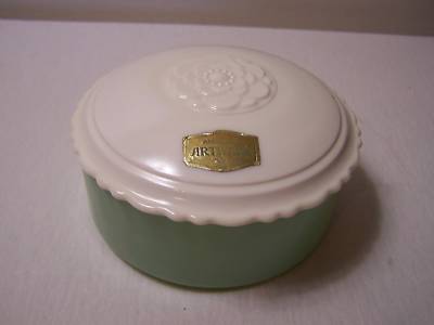 VINTAGE AM ARTWARE JADEITE/MILK GLASS POWDER BOX DISH