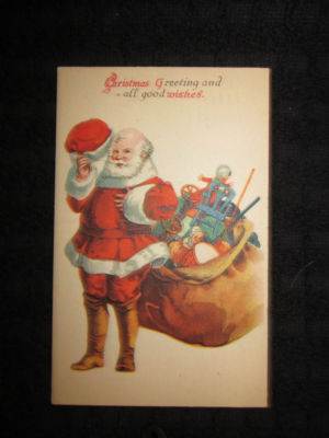 VINTAGE SANTA WITH SACK FULLOF TOYS POST MARKED 1922