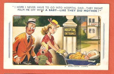 Old Bamforth Comic Postcard, New Baby, 1549