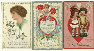Title (ebay affiliate link): 3 Card Lot, Valentine's Day, Tuck Couple, Cupid, Lovely Lady 1909!!