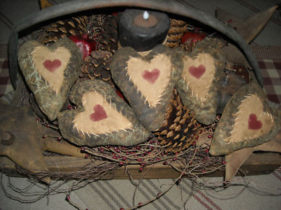 pRiM sTITcHED QuiLt HeArT OrNiEs SeT oF 5 ~ HeArT StEnciLeD ~ pRiM StiTcHiNg