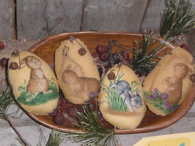 Title (ebay affiliate link): 4 Primitive Easter Bunny Rabbit Fabric Eggs Bowl Fillers Ornies Shelf Sitters