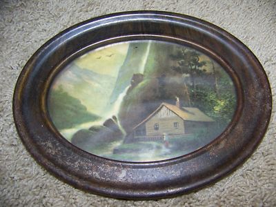 Antique Oval Tin Framed Picture