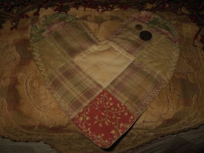 PrimiTive ValenTines Day GruNgy old Quilt Heart Candle Table Dish Bowl Mug Mat