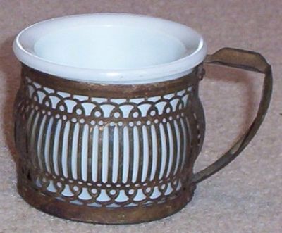 Vintage Milk Glass Shaving Mug in Metal Holder